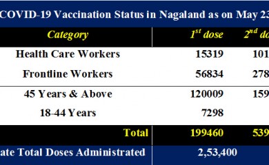 Dimapur, May 23 (MExN): With the confirmation of 223 fresh COVID-19 cases, Nagaland’s cumulative tally of infections breached the 20,000-mark on Sunday. This is the 5th consecutive week that the gap betwe
