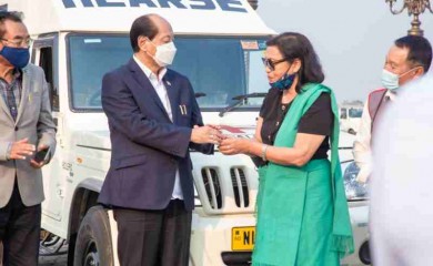 Kohima, April 7 (MExN): Nagaland Chief Minister Neiphiu Rio handed over the keys of a hearse to the Indian Red Cross Society Nagaland Chairperson Abeni TCK, at the CM’s residential office on April 7. In a