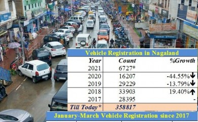 Vehicle registration in Nagaland has been gradually improving since August 2020 but is yet to reach pre-loc