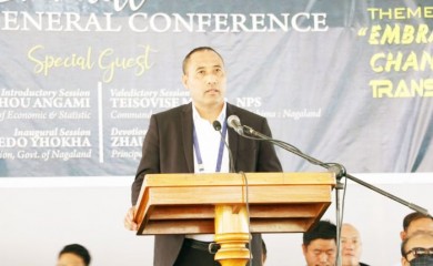 Kohima, March 27 (MExN): Adviser, Technical Education and Election, Medo Yhokha while addressing the inaugural session of the Northern Angami Students’ Union (NASU) 46th Biennial General Conference as spe