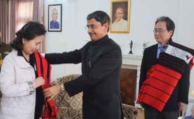 The Ambassador of the Republic of Korea to India, Shin Bong-Kil, his wife Hwang Meesook, and other officials called on Nagaland Governor, RN Ravi at Raj Bhavan Kohima on February 12. (Photo Courtesy: PRO Raj Bh