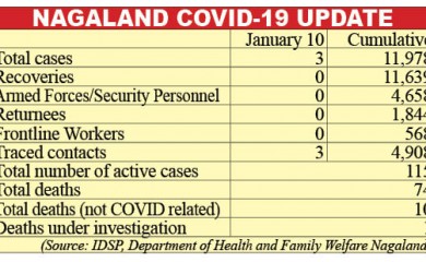 The Nagaland COVID-19 tally reached 11,978 with three more people testing positive on Sunday.