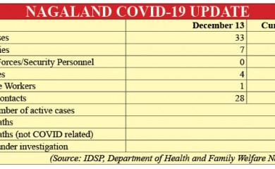 With the detection of 33 new cases on December 13, the total number of COVID-19 cases in Nagaland increased to 11,709.
