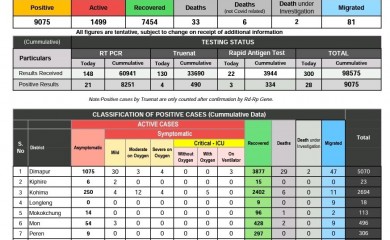 Dimapur, November 1 (MExN): 28 new COVID-19 cases were reported in the State on Sunday, with 22 in Dimapur, 4 in Kohima and 1 each in Mon and Longleng. According to an update from State Health Minister S Pangny
