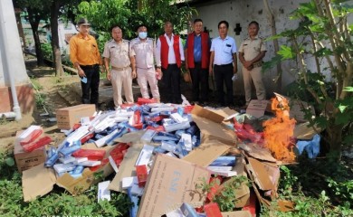 DIMAPUR, OCTOBER 18 (MExN): 24,000 packets of foreign made cigarettes illegally imported to Dimapur were destroyed at the Diphupar Police Station in the presence of the Diphupar village council chairman and Hea