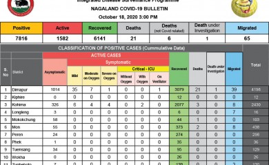 Dimapur, October 18 (MExN): Another 118 new COVID-19 cases were reported in Nagaland on Sunday pushing the state’s tally to 7,816.