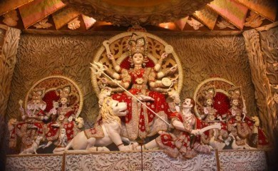 As a part of the celebration of the Durga Puja festival, pandals with idols o