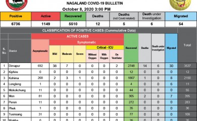 DIMAPUR, OCTOBER 8 (MExN): 21 new COVID-19 cases were detected in Nagaland on October 8, bringing the State’s total to 6736. The new cases detected on Thursday include 17 from Kohima, 2 from Dimapur