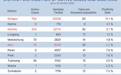 Dimapur, October 4 (MExN): A total of 123 new COVID-19 positive cases have been detected in Nagaland on October 4, informed a health authority. The State also recorded 51 recoveries on Sunday.