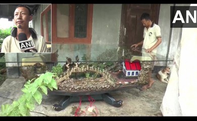 Dimapur, September 27 (MExN): Ningwon Zingkhai, a sculptor residing in Dimapur, has recreated a lifelike panoramic scene from a village complete with huts, a bridge and even a gushing waterfall on a block of wo