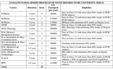 Dimapur, August 12 (MExN): The NITTE (Deemed to be University), Mangaluru Karnataka is offering 25 seats in various courses for the students of Nagaland under “NAMASTE Scholarship Program.”