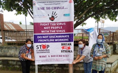 Phek, June 26 (MExN): Phek District Information Education Communication (IEC) team comprising of Family Welfare Assistant (FWA) and computor have pasted banners on the preventive measures and stigma on COVID-19