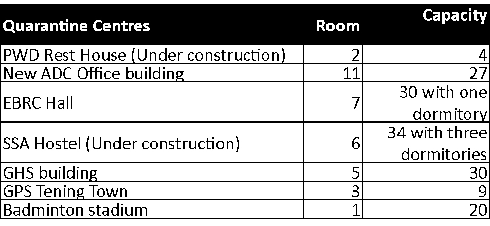 Peren, May 16 (MExN): Quarantine centres in Tening will be ready by May 19, a according to a DIPR report.