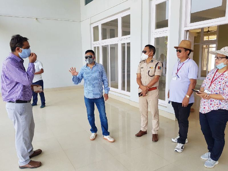 APC Nagaland Kikheto Sema who is also the overall incharge Dimapur district for COVID-19 along with DC and CP Dimapur and other officials inspecting the reception center at Agri Expo Dimapur on May 12. (DIPR Ph