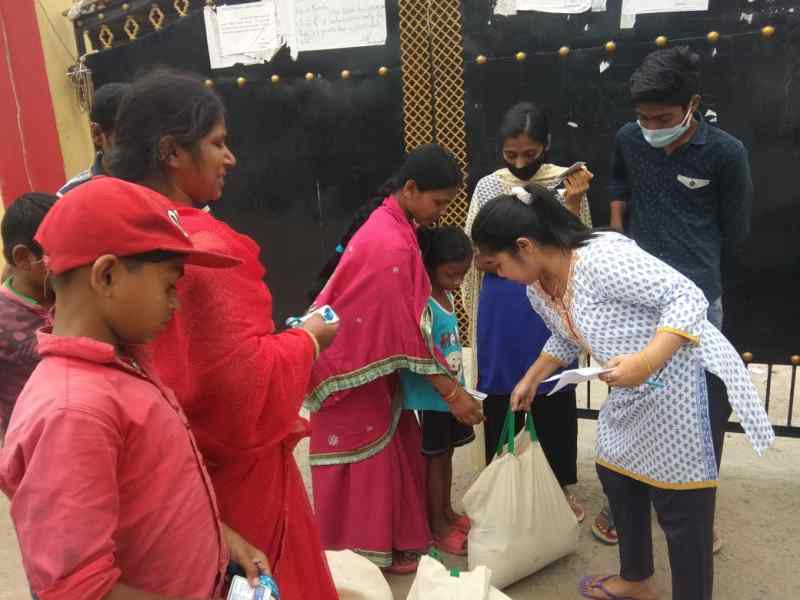 Food packets being distributed to families of needy students by teachers of MGM College and MGM Higher Secondary School in Dimapur on May 11.