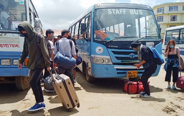 Stranded persons set to depart Kohima for their respective home districts. (Morung Photo)