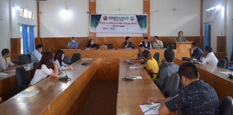 Commissioner & Secretary, Horticulture Anenla T Sato, IAS addressing the consultative meeting held at DCs conference hall, Wokha on May 12. (DIPR Photo)