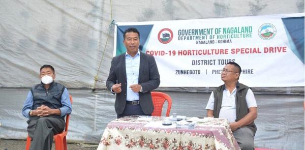 Director, Horticulture, Dr R Elithung Lotha addressing the meeting held during the visit to Zunheboto on May 5. (DIPR Photo)
