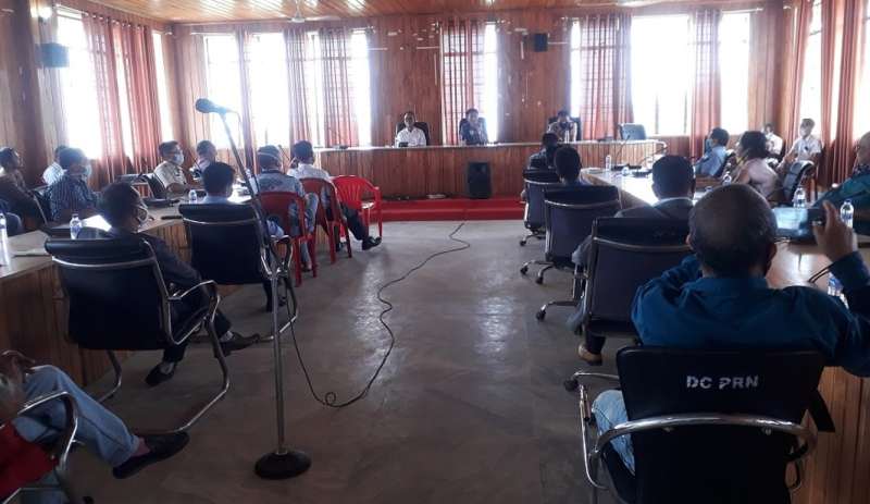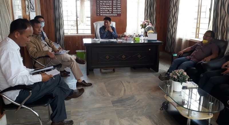 Deputy Commissioner and Chairman DTF Peren, Sentiwapang Aier and others during the Peren District Task Force meeting on COVID-19 in the conference hall of DC’s office, New District HQ Peren on May 5. (DIPR Ph
