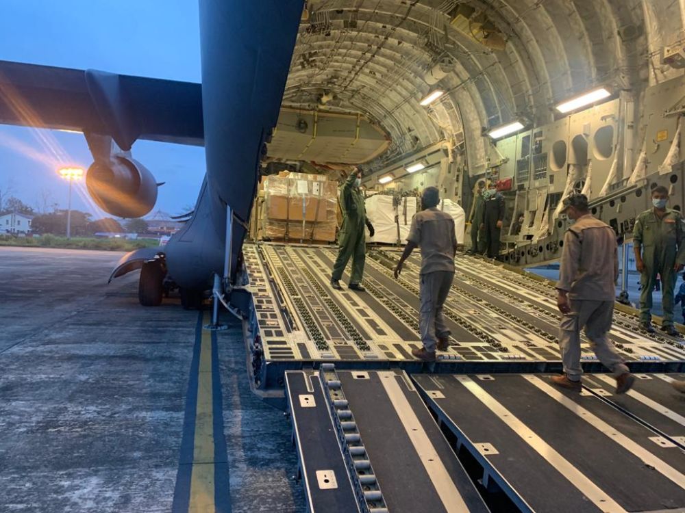 Workers unloading equipment for the BSL-2 lab to be set up at Referral Hospital, Dimapur, which arrived in Dimapur airport on Sunday evening. The consignment included additional instruments for the BSL-3 lab at
