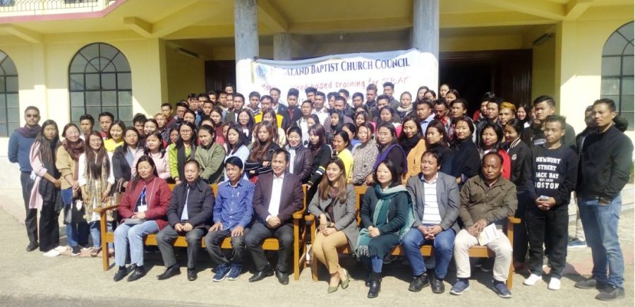Participants with the resource persons and others during the training conducted by Nagaland Baptist Church Council at Satakha Town Baptist Church from March 10 to 12. (DIPR Photo)