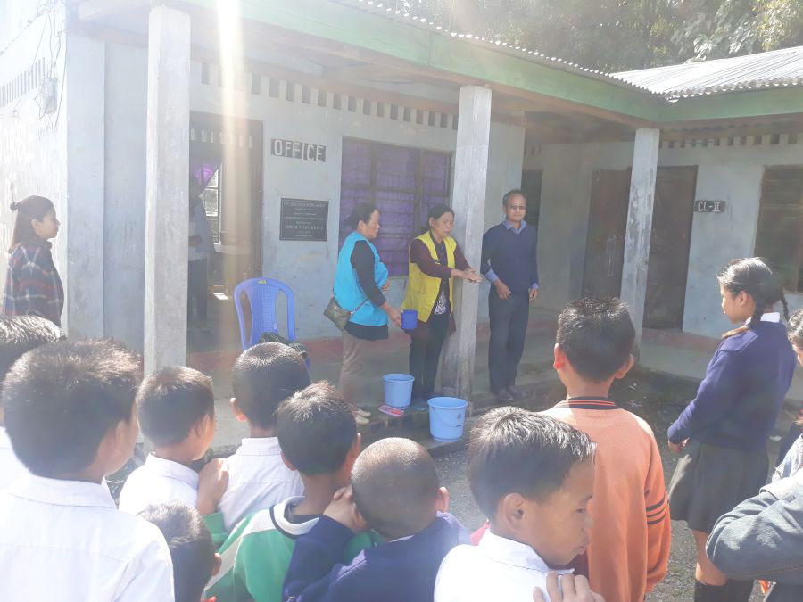 A demonstration on hand washing being shown to the children at Amiphoto Government Middle School on March 16. (Photo Courtesy: CDPO office, Zunheboto)