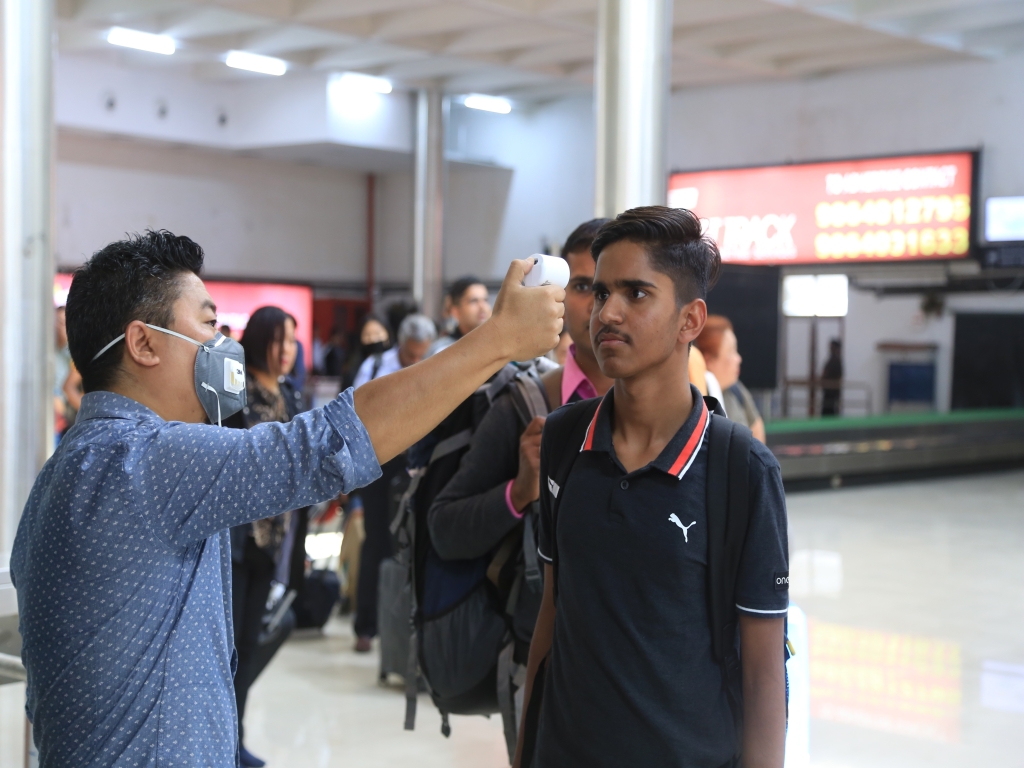 Passengers line up to be scanned for COVID-19 on arrival at the Dimapur terminal on March 8. (Morung Photo by Soreishim Mahong)