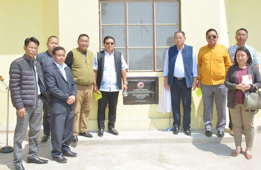 Advisor CAWD and NSDMA, Kazheto Kinimi with others during the inaugural of GA Rest House at Akuluto town, Zunheboto on March 14. (DIPR Photo)