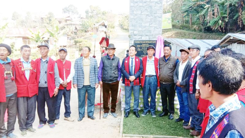 Advisor Toshi Wungtong with others during the inauguration of the ‘Entrance Gate’, Tangha village on March 12. (DIPR Photo)