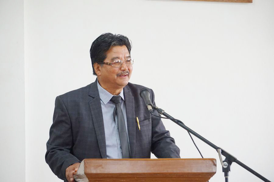 Retiring Principal of Fazl Ali College, T Allong Tzudir addressing the gathering during his farewell programme held on March 3.