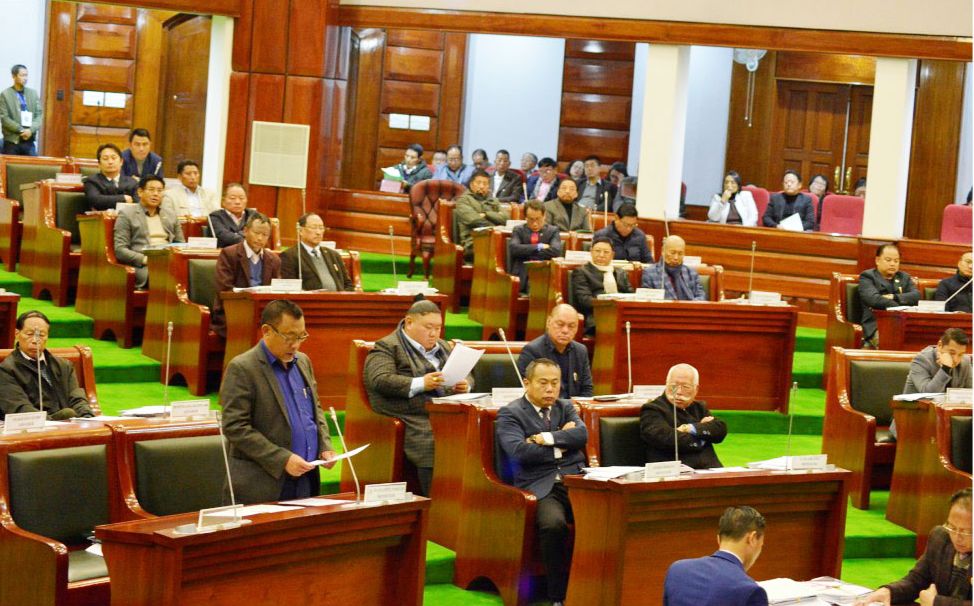 Nagaland Health Minister, Pangyu Phom updating on the status in Nagaland with regard to the Novel Coronavirus at the NLA on February 8. (DIPR Photo)