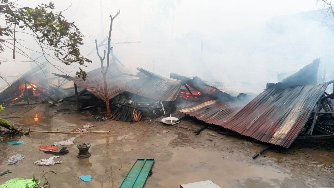 The site, where a fire gutted 3 houses at Water Supply colony, Chümoukedima on February 8.