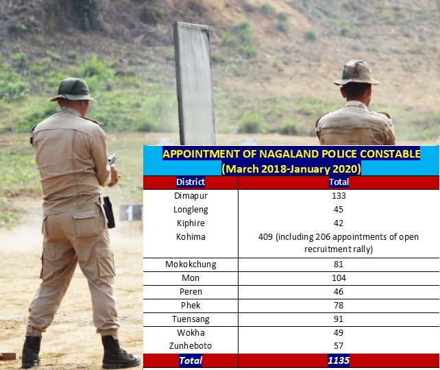 Nagaland’s Deputy Chief Minister (Home) Y Patton today informed that a total of 1135 police constables have been appointed from March 2018 to January 2020.