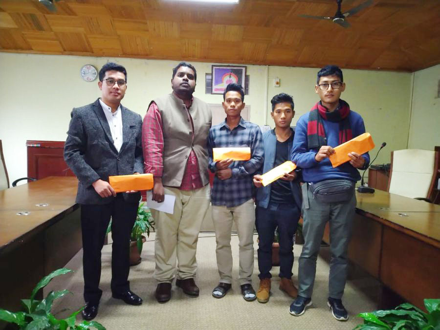 The four entrepreneurs with Mon DC after the programme held at DC’s Office Conference Hall in Mon town on February 6.
