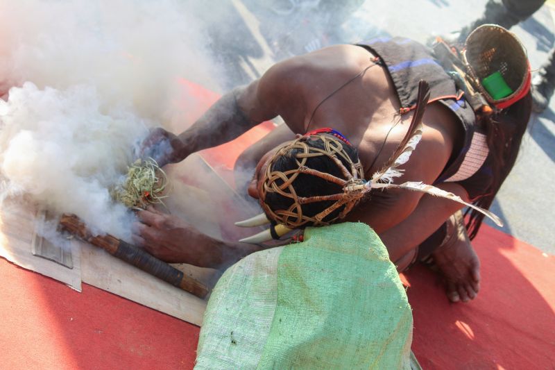 People participating in various indigenous and traditional games organised as a part of the Poanglüm hornbill celebration underway at Tuensang town on January 14.