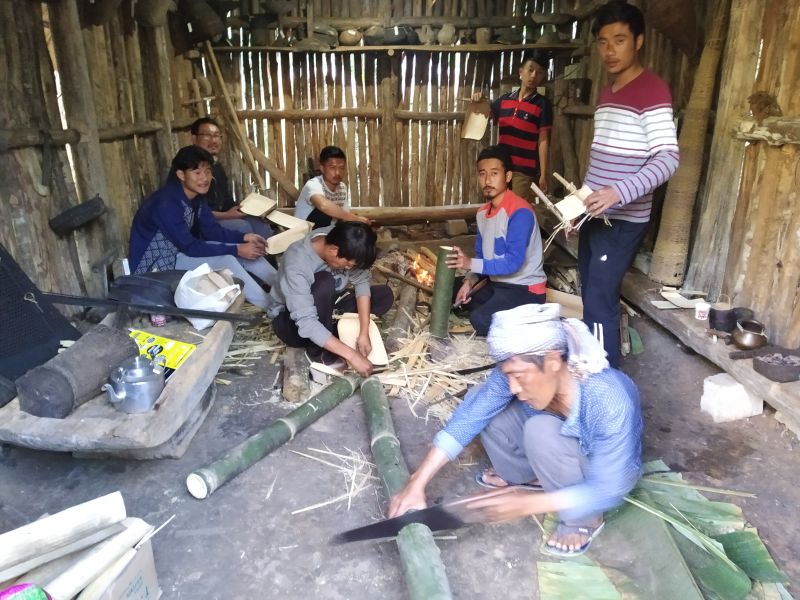 Youths learning to make bamboo plate during the training held at Aruju Tsuki-Bachelor’s Dormitory, Changtongya Village.