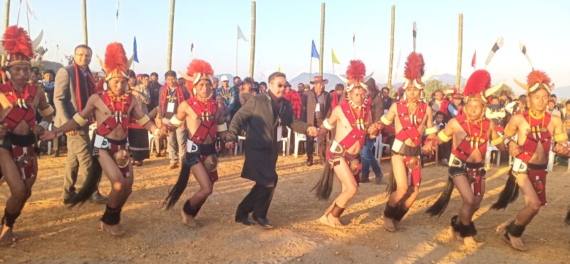 Advisor Khehovi Yepthomi joins the cultural troupe during the Yimchungrü Tsüngkam Neo cum Mini Hornbill Festival inaugurated on January 15.