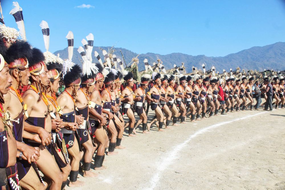 Kongkaison Cultural Troupe, Chingmei performing ‘Lo Chia’, a traditional song-cum-dance during the Poanglϋm Mini Hornbill which went underway at Loyem Memorial Ground, Tuensang town on January 13. Poanglϋ