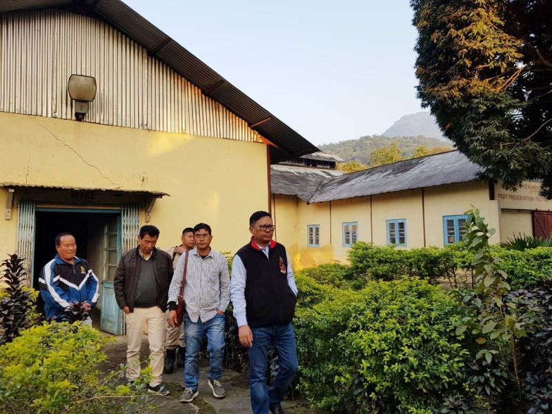 Commissioner & Secretary Horticulture, Y. Kikheto Sema, IAS accompanied by other officers visiting the Fruit Canning Factory at Longnak on Monday. (Morung Photo)