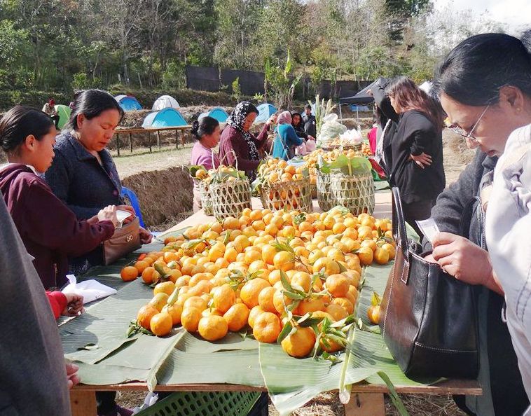 Visitors to the Orange Festival buying oranges at the Orange Festival at Rüsoma which began on January 10.