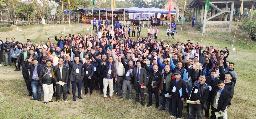 Delegates along with AGBCN council officials and staff after unfurling of flag for the 12th Annual General Conference at Mission Centre in Singrijan, Dimapur on January 10. (Photo Courtesy: Conference Publicity