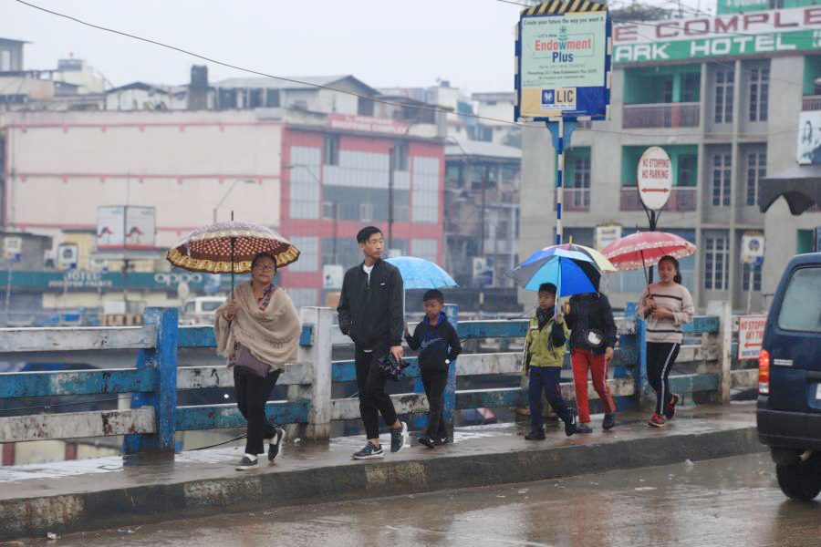 People walking with umbrella in the rainy weather at Dimapur on January 3. (Morung Photo by Soreishim Mahong)