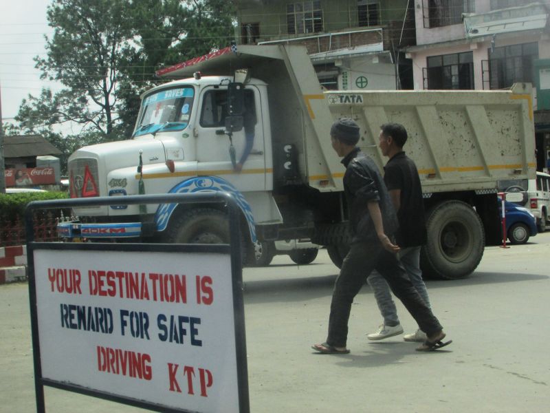 Pedestrian walk past a traffic signage at High School area Kohima. Kohima Traffic Police has taken up a number of measures to ease traffic problem in Kohima. (Morung Photo)