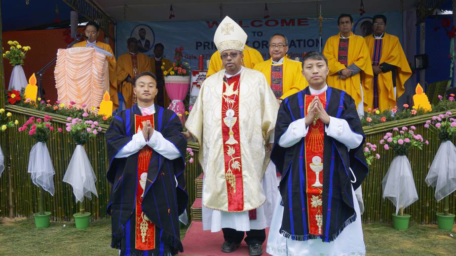 Lakuti, December 28 (MExN): Reverend deacons Longshithung Marcus Yathan and Joshua Enipemo Kikon CM were ordained priests for the Diocese of Kohima and the Congregation of the Missions by Most Rev Dr James Thop