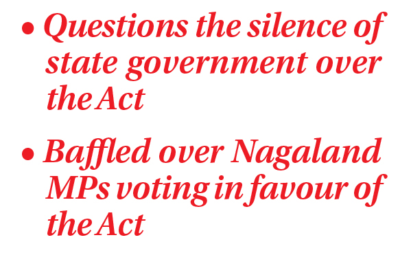 DIMAPUR, DECEMBER 27 (MExN): The Chakhroma GBs Union (CGBU) has expressed concern over the passing of the Citizenship Amendment Act (CAA) 2019. The Union through a press statement alleged that the Act is nothin