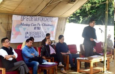 Deputy Speaker NLA and Chairman DPDB Mokokchung, Sharingain Longkumer during the District Planning and Development Board (DPDB) Mokokchung cum-Pre-Christmas meet at Milak River Tuli on December 6. (DIPR Photo)