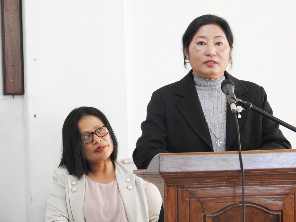 Dr Watimongla Pongener, Associate Professor speaking during the farewell programme held in her honour on December 7. (Photo Courtesy: FAC)