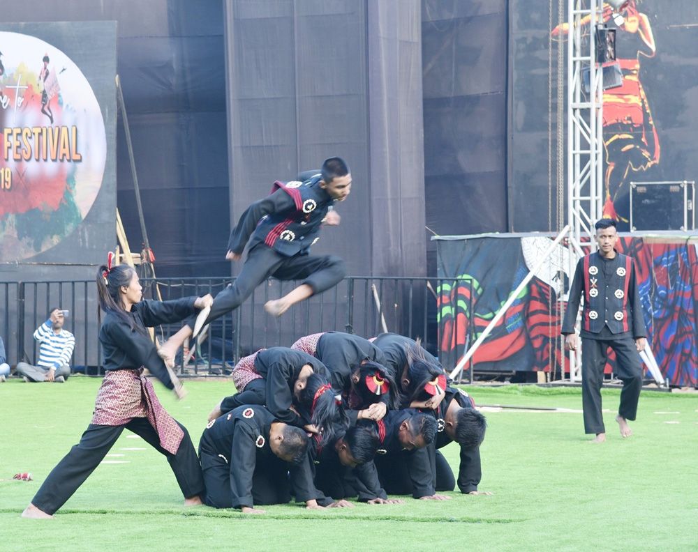 Naga Kiti Silat fighters mixed form of art from Nagaland demonstrating at the ongoing Hornbill Festival at Kisama on December 8. (DIPR Photo)