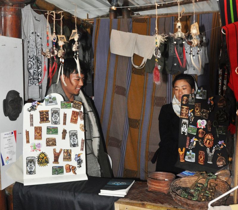 Cache Naga by Leno, a cottage industry based in Kohima, has been exhibiting products which is put up for sale at Bamboo Pavilion, Kisama. The products on display range from indigenous miniature souvenirs artifi