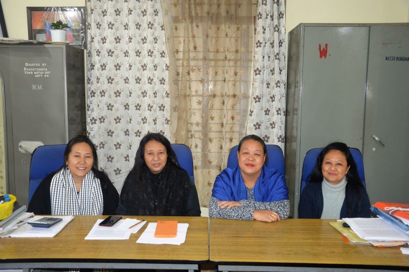 Watsü Mungdang officers and Aowli Benjongmung 2019 organizers while addressing a press conference at their office chamber, December 7. (Morung photo)